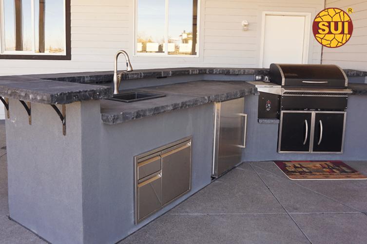 Outdoor kitchens and dining spots count as another solid fit. Selected stones resist rain, sun, and freezing cycles better than many synthetics. Large slabs mean fewer joints, so water and bits of food have less chance to hide. Daily cleaning stays quick with a simple wipe rather than careful work around many seams.